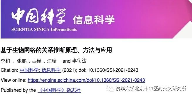 2021年11月16日,中国科学:信息科学发布了由李梢、张鹏、古槿、张鹏、江瑞、李衍达撰写的《基于生物网络的关系推断原理、方法与应用》一文,详细介绍了基于生物网络的关系推断理论与方法,以及部分典型案例,为克服当前还原论医学研究模式的局限,从复杂生物网络角度理解疾病的本质规律提供了重要突破口。