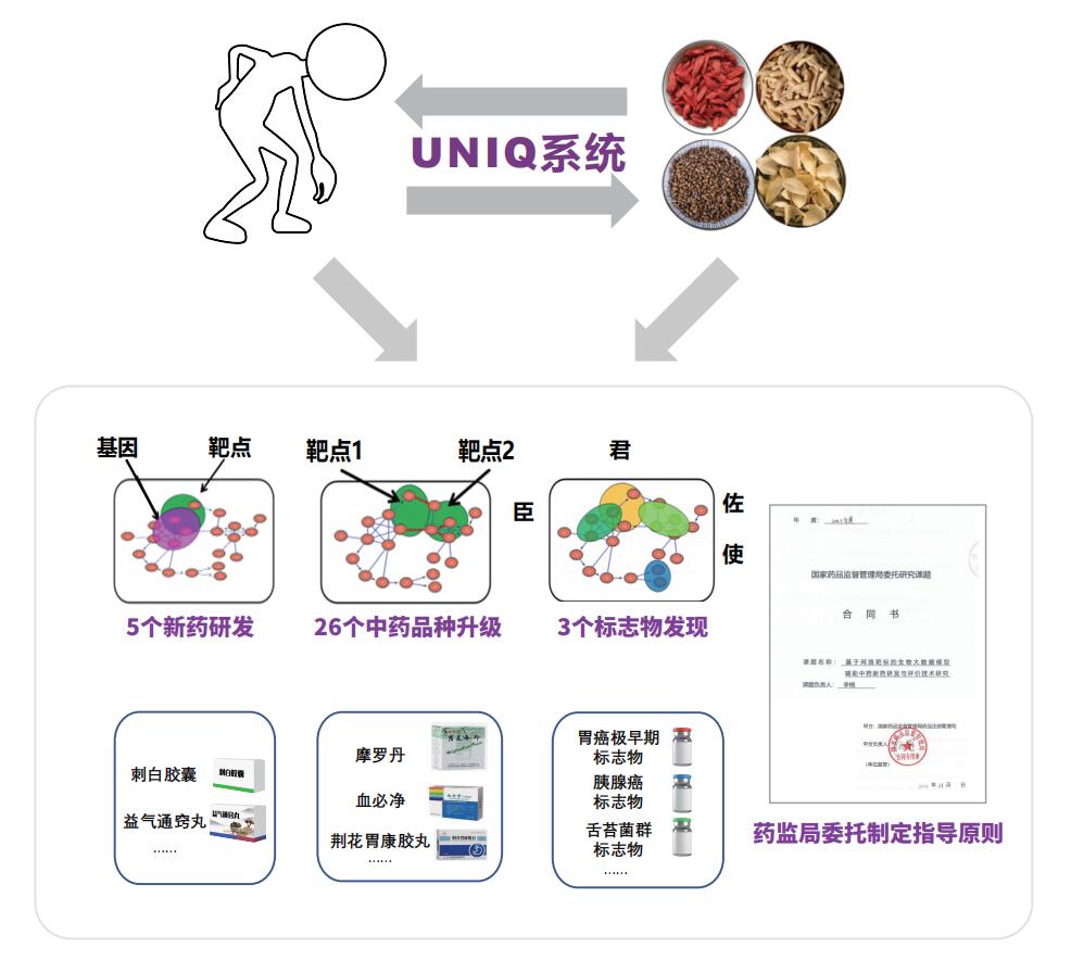 揭示中药方剂的网络调节机制,实现中药上市前创制、上市后疗效评价的关键技术突破,支撑中药新药发现、名方/验方/中成药研究,支撑中药精准研发和大品种升级,受国家药监局委托主持制定中药研发指导原则。