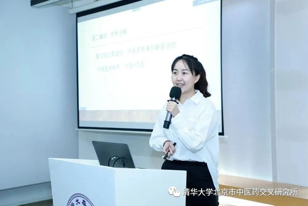清华大学玉泉医院高慧娟博士代表清华大学玉泉医院副院长冯兴中针对“医工结合,融合创新”进行了主题分享。高慧娟博士提到,医工结合逐渐作为引领未来医学创新的主导方向,在此过程中,医工结合是途径,中医药传承创新是目的,要坚持传承精华、守正创新。