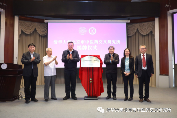 随后,举行了“清华大学北京市中医药交叉研究所”揭牌仪式。